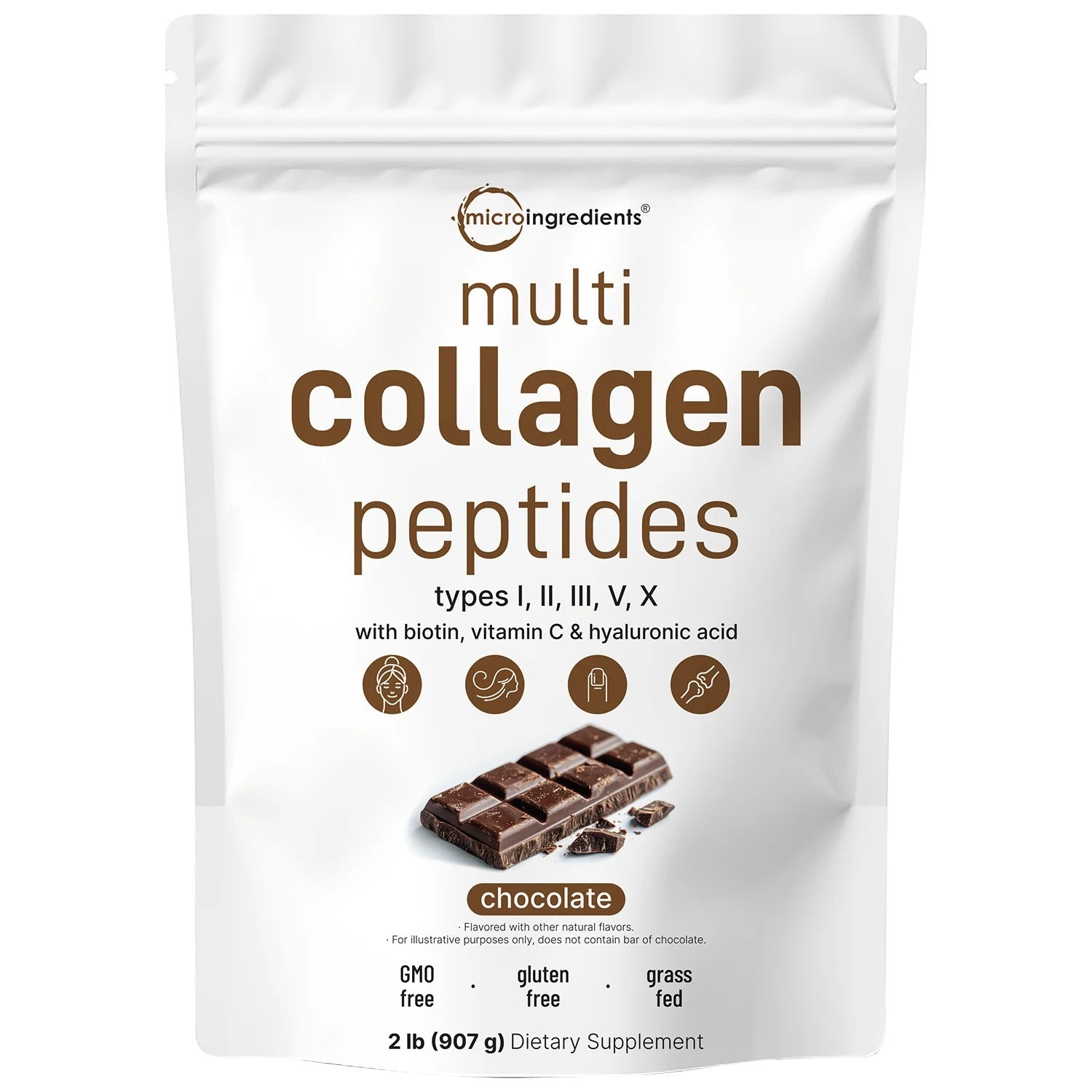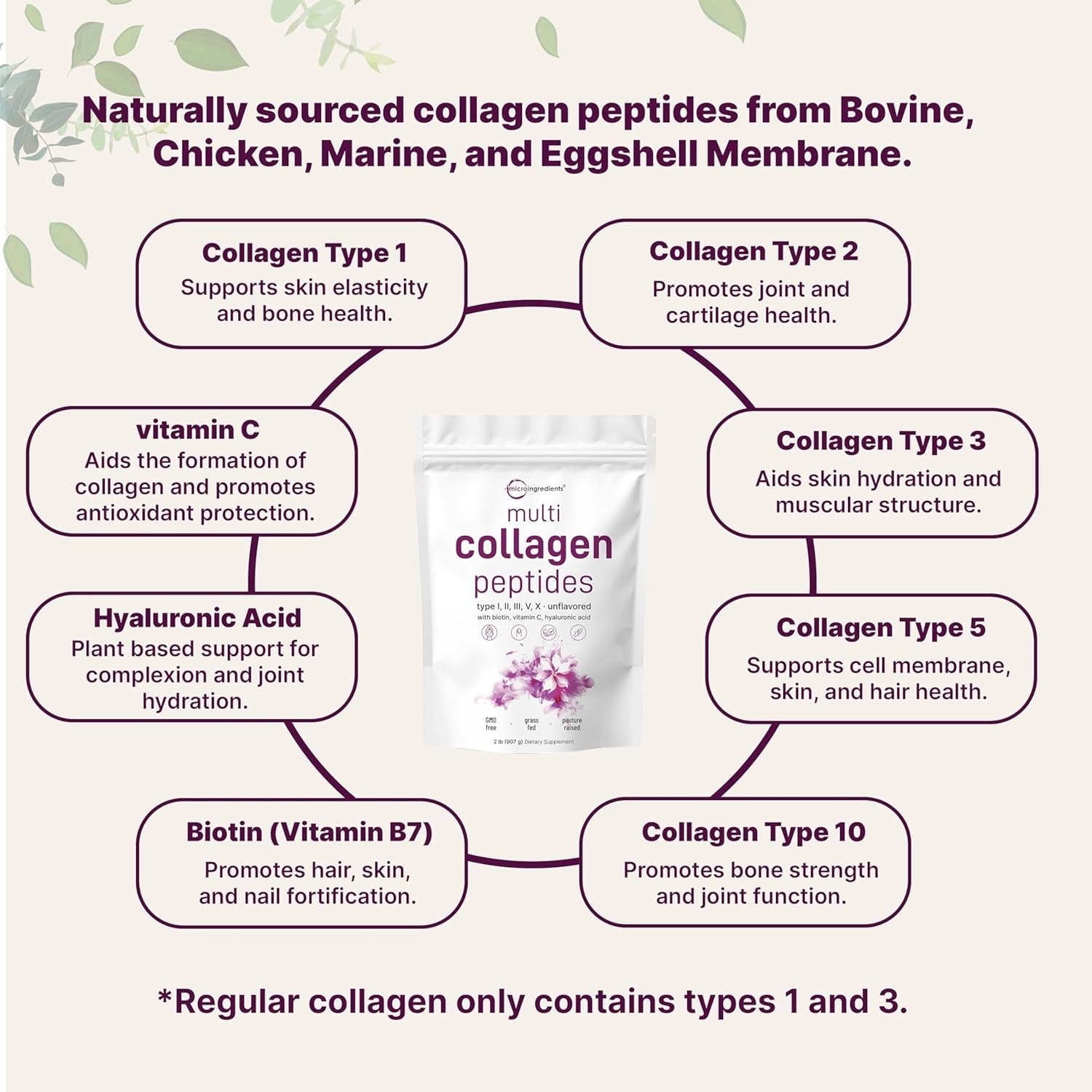 PureHabits™ Micro Ingredients Multi Collagen Peptides Powder, 2lb | Type I, II, III, V, X + Biotin, Vitamin C & Hyaluronic Acid | Unflavored | Supports Hair, Skin...